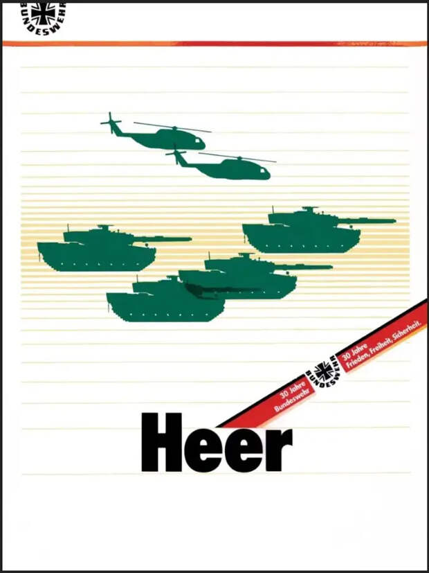 В 1985 году вновь появилось вполне узнаваемое изображение техники. Плакат, посвящённый 30-летию Бундесвера на защите «мира, свободы и безопасности».