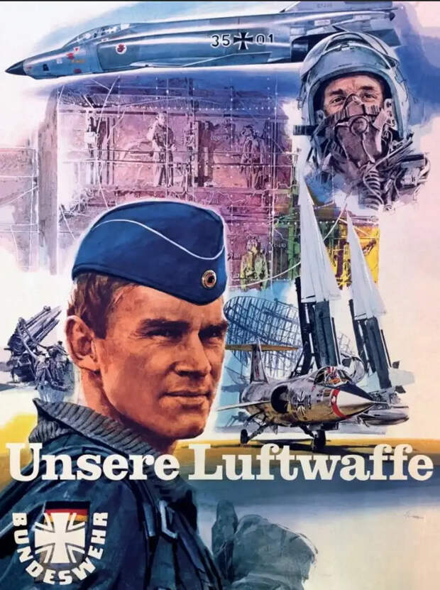 В начале шестидесятых годов Бундесвер рекламировал себя в ярко-абстрактных цветах и формах, как на этом плакате, посвящённом вооружённым силам. Текст под орлом: «Наша армия».