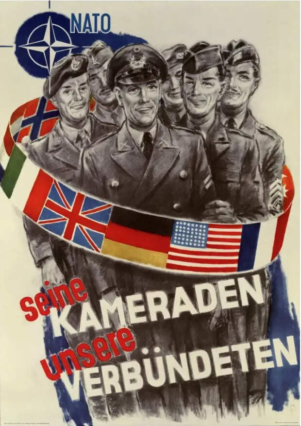 Рекламный плакат для Бундесвера, интегрированного в НАТО, публиковался Управлением прессы и информации Федерального правительства в 1955 году. Надпись на плакате: «Его товарищи, наши союзники»